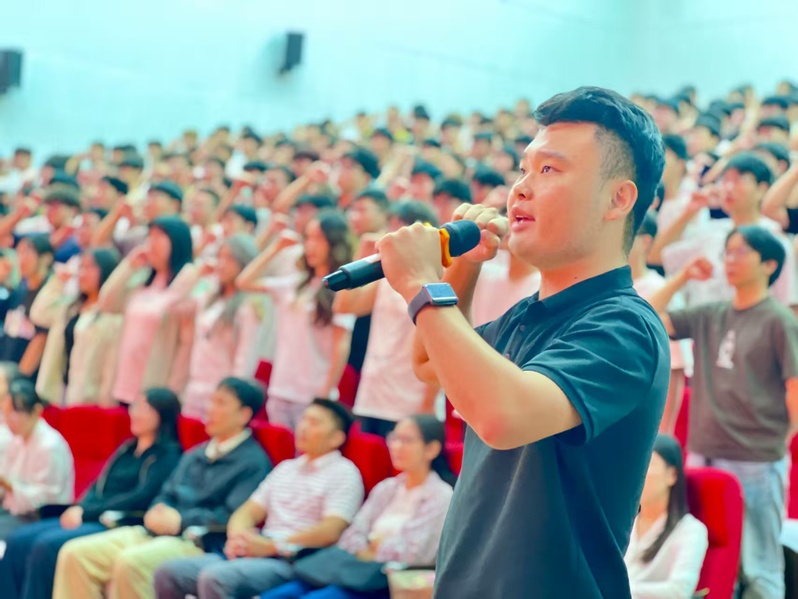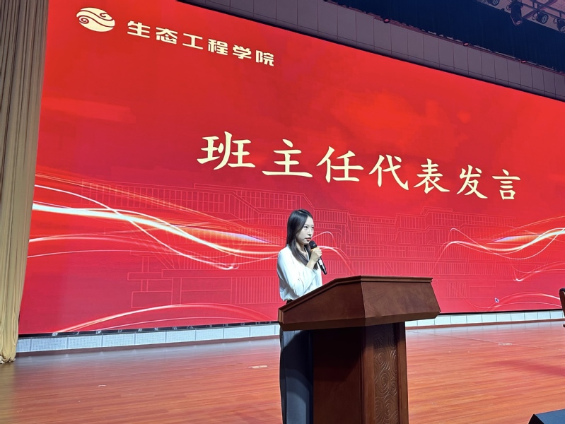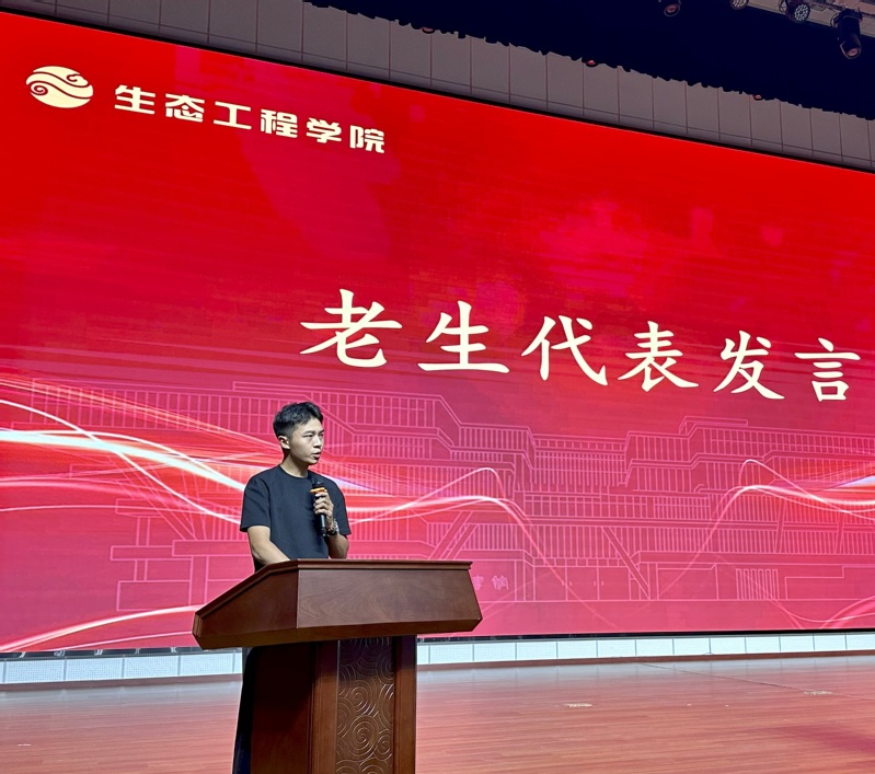 宣誓环节将大会推向高潮。2025级全体新生在领誓人李子鹏同学的带领下,紧握右拳,庄严宣誓:“守护绿水青山,共建生态文明!”铿锵誓言回荡会场,展现了生态学子坚定的使命感和责任感。